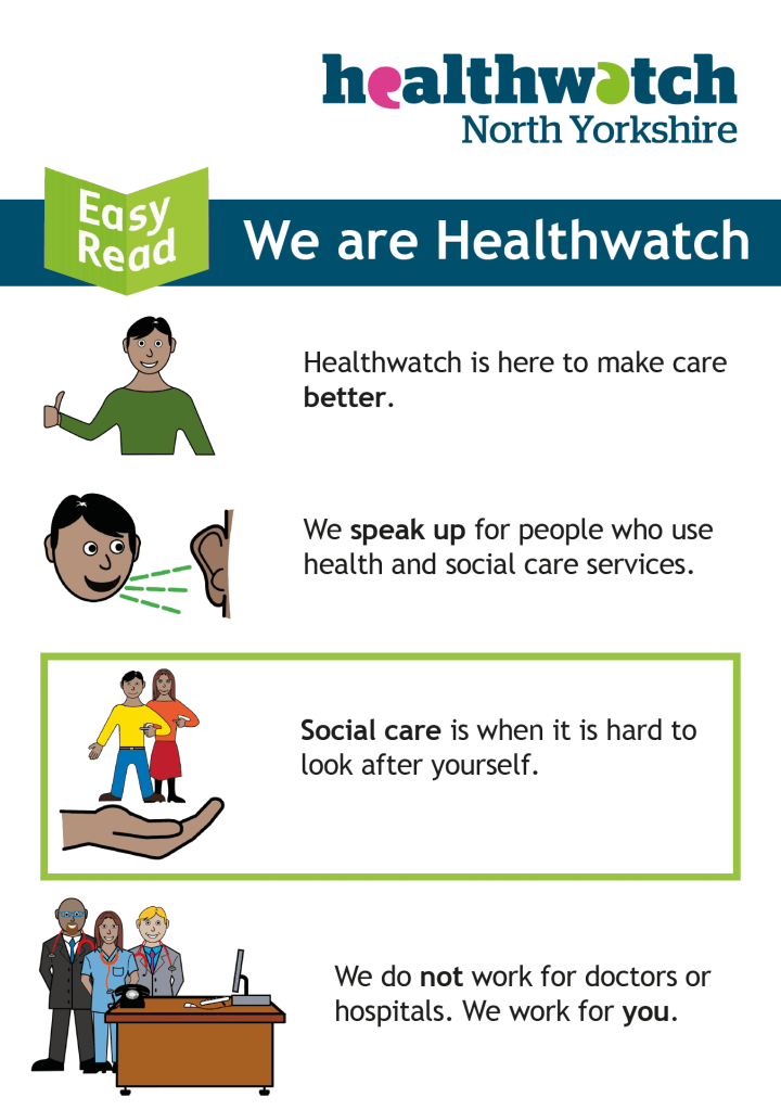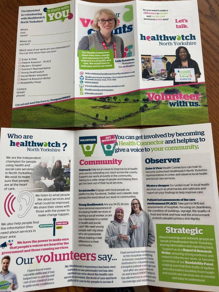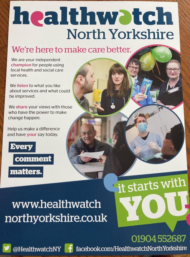 I produced a wide range of printed material in a range of formats for Healthwatch North Yorkshire to support work including volunteer recruitment (trifold leaflet above) and general-purpose promotional posters (below). Also bespoke material to support specific events, campaigns and outreach/engagement work including focus groups, including Easy Read (bottom).